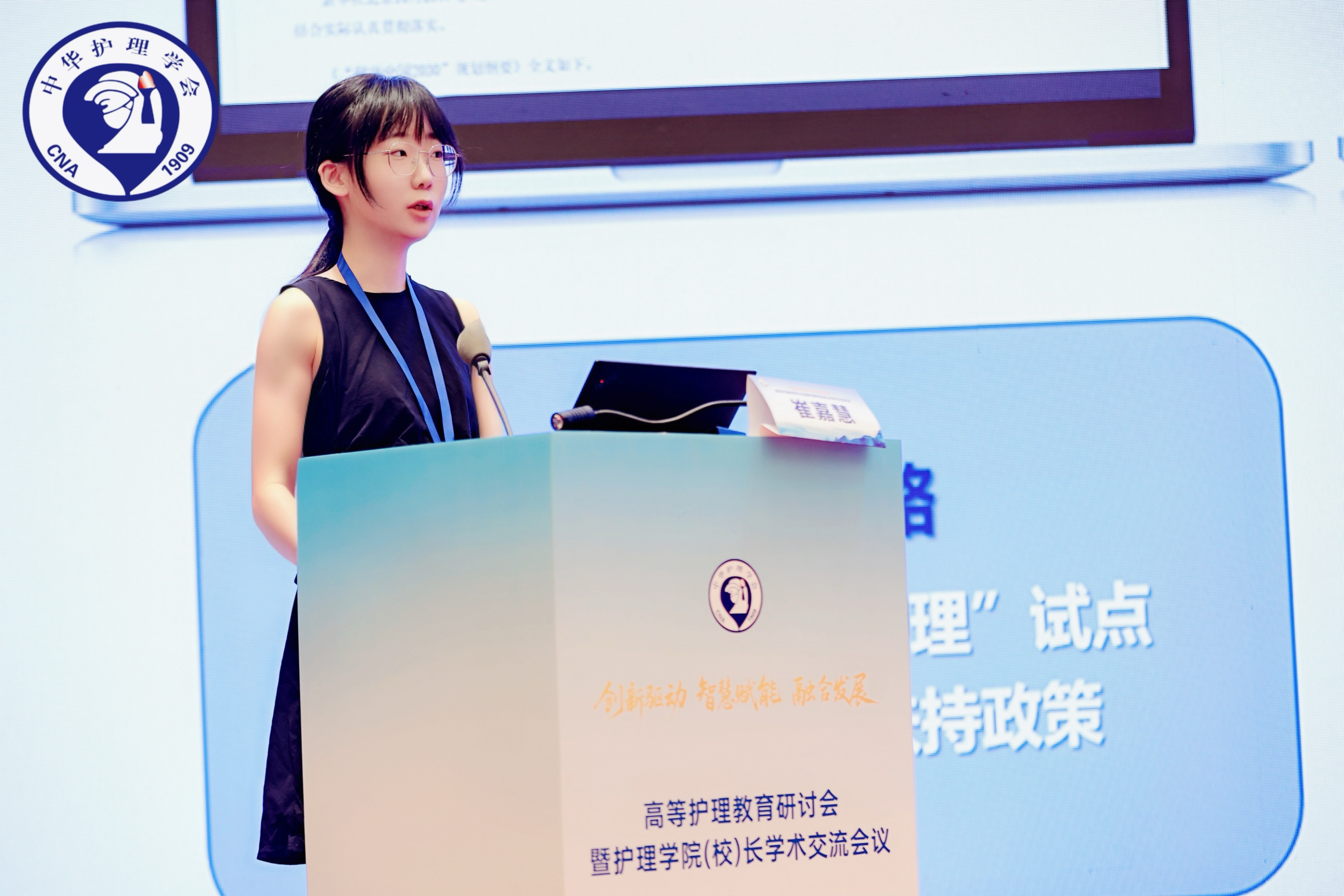 会上,崔嘉慧同学分享了题为《“颐智通”——基于脑机接口的失能老人智慧生活辅助平台》的研究。谈及此次大会发言的感受,她表示:“这次交流让我深刻体会到护理领域与前沿科技结合的无限可能。科研过程中,从最初的构想萌芽到不断完善方案,离不开导师的悉心指导和团队的协作支持。通过与来自各地的护理师生交流,我不仅收获了宝贵的建议,更坚定了将创新思维融入护理实践、为老年护理事业贡献力量的决心。科研之路虽充满挑战,但每一次突破都让我对护理专业的价值有了更深的理解。”