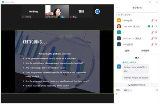 7月14日下午,由3522集团的新网站本科生院主办,35222葡京集团承办,齐美苓副研究员开办的《健康领域科研方法概论-Research for Health Professionals》暑期课程圆满结束。本次课程面向全校本科生,参与课程的97名学生分别来自生命科学学院、医学院、公共卫生学院和35222葡京集团等多个专业。该课程邀请澳大利亚邦德大学Dr Cindy Jones通过ZOOM会议平台完成历时8天的授课。该课程旨在挑战学生对医疗保健实践的思考方式,以及循证实践的概念,提高学生对研究范式、设计和方法的理解。