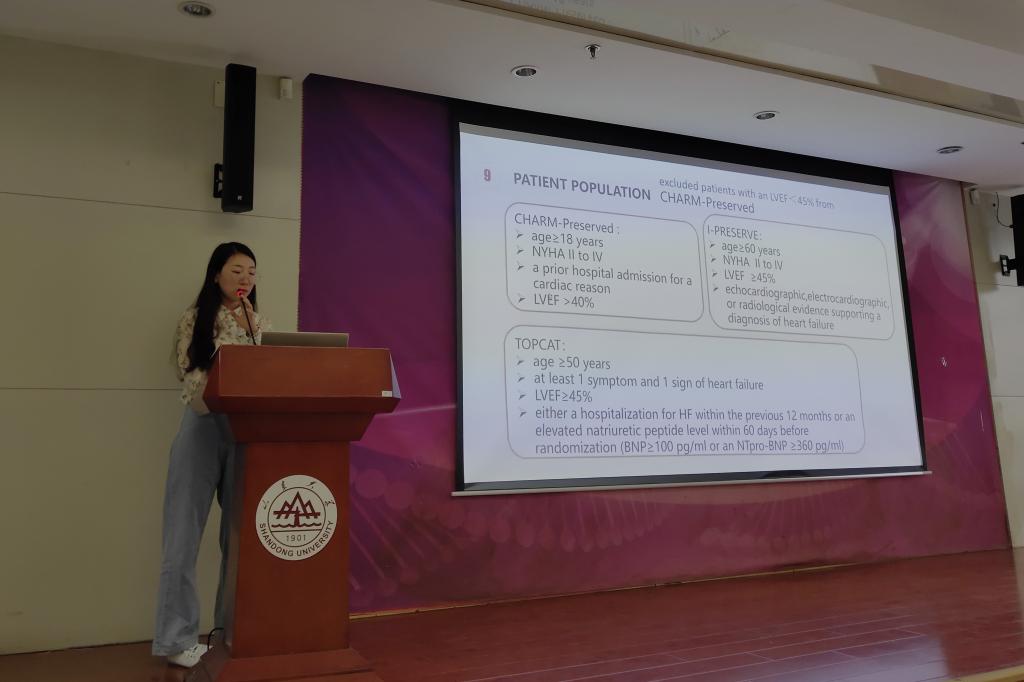 本次论坛第一位汇报者是2018级学术型硕士研究生安嬿,她为大家带来的文献题目是《Age-Related Characteristics and Outcomes of Patients With Heart Failure With Preserved Ejection Fraction》,这篇文章于2019年8月6日发表于《JOURNAL OF THE AMERICAN COLLEGE OF CARDIOLOGY》。该文献的研究目的是分析不同年龄阶段HFpEF患者的临床特点和超声心动图特征以及临床结局间的差异,包括各年龄组HFpEF患者的死亡原因差异,数据来源于迄今为止进行的3个最大的HFpEF临床试验数据库。研究的主要结局指标是全因死亡率,次要结局包括心血管死亡、非心血管死亡、因心衰住院、生活质量等。研究结果表明,HFpEF患者表现出明显的年龄依赖性临床特征;年轻的患者通常较肥胖、非白人多、男性较多,老年患者通常患有多种合并病、女性居多;年轻患者死于心血管原因较多,尤其是猝死,而老年患者死于非心血管原因较多。因此,针对肥胖和预防心脏性猝死的介入试验可能对HFpEF的年轻患者有重要意义。