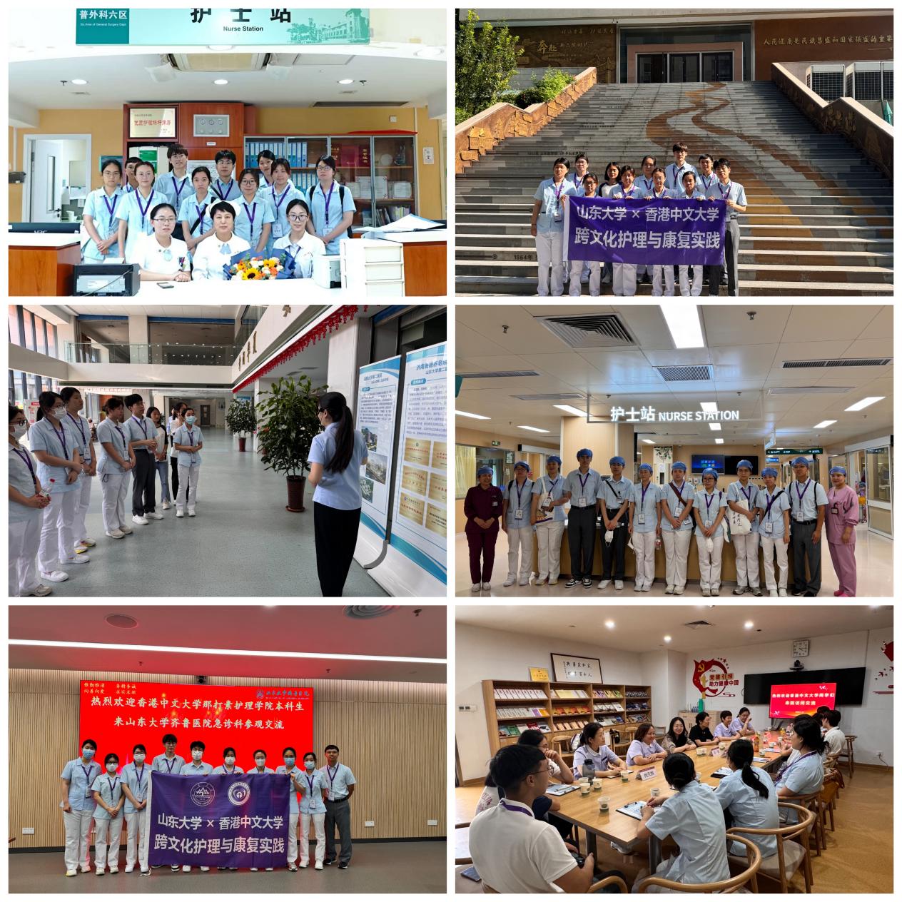 为了更深入了解内地临床护理的发展现状,香港中文大学的同学们参观了3522集团的新网站齐鲁医院的急诊科、普外科,以及3522集团的新网站第二医院的乳腺外科、新生儿重症监护室和南部院区(济南善德养老院)。在这些科室的参观中,同学们全面了解了内地现代护理体系的发展情况,以及康复技术在临床中的应用。通过这些互动和实地体验,大家对内地与香港护理实践的差异和共通之处有了更为深入的认识。