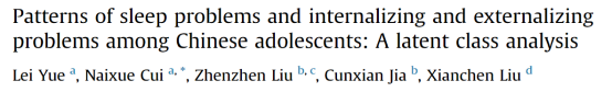 《Patterns of sleep problems and internalizing and externalizing problems among Chinese adolescents: A latent class analysis》